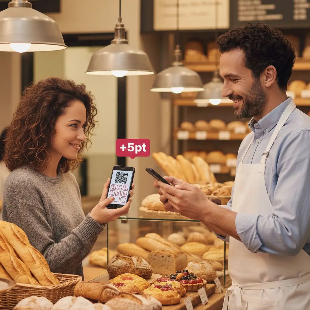 Crei la tua attività sull’app e imposti soglie e premi (es. “Ogni 10 pizze, una gratis”).